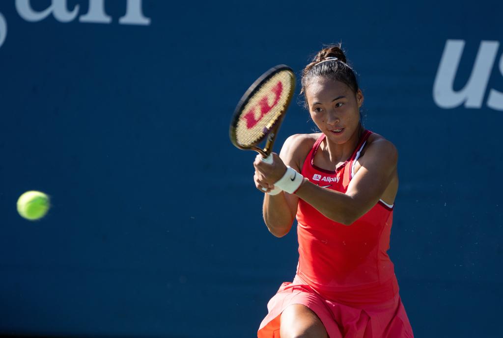 9月2日,鄭欽文在比賽中回球。新華社記者 劉杰 攝