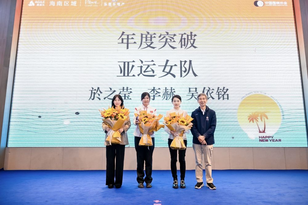 除了本賽季圍甲常規(guī)賽各獎(jiǎng)項(xiàng)外,中國(guó)圍棋協(xié)會(huì)為在2023年各大賽事中有精彩發(fā)揮的棋手設(shè)置了特別獎(jiǎng)。吳依銘、於之瑩、李赫組成的亞運(yùn)中國(guó)女隊(duì)榮膺年度突破獎(jiǎng),她們?cè)诤贾輥嗊\(yùn)會(huì)獲得圍棋女子團(tuán)體冠軍,為中國(guó)隊(duì)奪得歷史上首枚亞運(yùn)會(huì)圍棋項(xiàng)目金牌。辜梓豪憑借在衢州爛柯杯擊敗韓國(guó)名將申真谞奪冠,獲得年度振奮獎(jiǎng)。一年內(nèi)包攬三星杯、LG杯兩大世界冠軍的丁浩獲得年度雙冠獎(jiǎng),成都女子圍棋隊(duì)獲得年度新軍獎(jiǎng)。