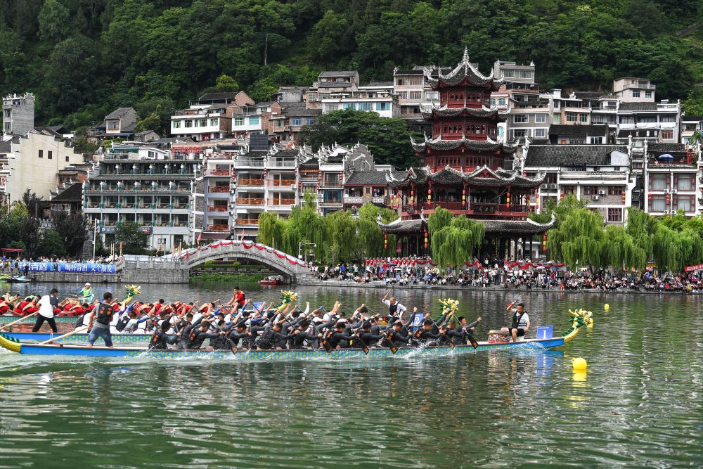 賽事期間還將舉行鎮(zhèn)遠(yuǎn)縣第四十屆賽龍舟文化節(jié),觀眾和游客可體驗(yàn)非遺集市、佛山·黔東南名特優(yōu)產(chǎn)品展銷會(huì)、“千人搶鴨子”等文娛活動(dòng)。