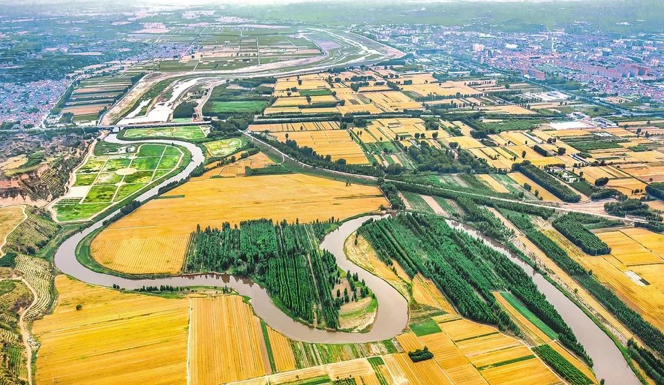 汾河稷山段彎曲的河道似舞者的飄帶飛舞在河東大地。薛俊攝