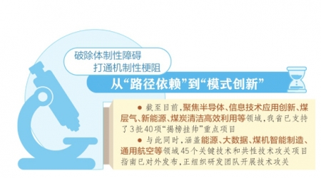 截至目前,聚焦半導(dǎo)體、碳基新材料、信息技術(shù)應(yīng)用創(chuàng)新、煤層氣、新能源、煤炭清潔高效利用等領(lǐng)域,我省已支持了3批40項(xiàng)“揭榜掛帥”重點(diǎn)項(xiàng)目,省財政引導(dǎo)資金2億元,帶動企業(yè)投資7億元。與此同時,涵蓋能源、大數(shù)據(jù)、煤機(jī)智能制造、通用航空等領(lǐng)域45個關(guān)鍵技術(shù)和共性技術(shù)攻關(guān)項(xiàng)目指南已對外發(fā)布,正組織研發(fā)團(tuán)隊(duì)開展技術(shù)攻關(guān)。