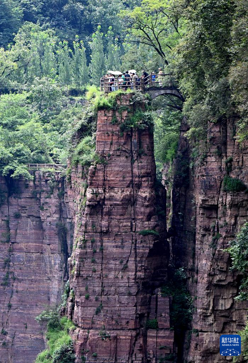 進(jìn)入暑期以來,河南萬仙山景區(qū)迎來旅游高峰。位于太行山深處的河南省輝縣市萬仙山景區(qū)紅巖絕壁大峽谷景色壯美,以雄、壯、險(xiǎn)、奇為特色,吸引游客前來游覽。