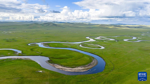 這是8月19日在內(nèi)蒙古呼倫貝爾市陳巴爾虎旗拍攝的莫爾格勒河風光(無人機照片)。(新華社記者 馬金瑞 攝)