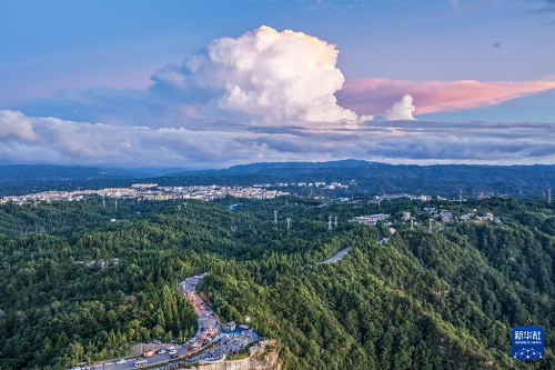 這是8月21日拍攝的重慶市石柱縣黃水鎮(zhèn)景色(無(wú)人機(jī)照片)。(新華社記者 唐奕 攝)