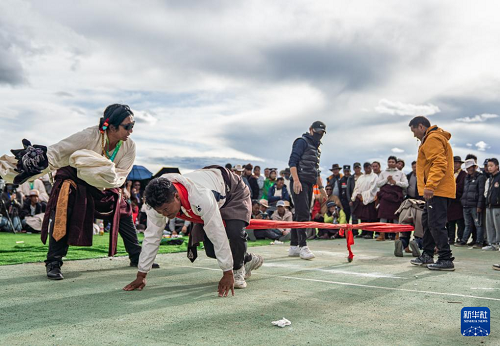 9月6日,在那曲市恰青賽馬節(jié)現(xiàn)場(chǎng),選手們參加押加比賽。(新華社記者 丁增尼達(dá) 攝)