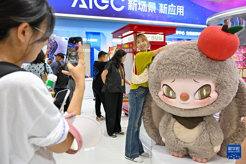 9月10日,參觀者在服貿(mào)會(huì)文旅服務(wù)專題展上拍照留念。(新華社記者 李鑫 攝)
