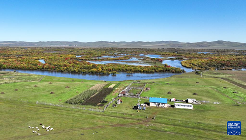 時下,內蒙古額爾古納濕地迎來秋日盛景,多彩的灌木叢點綴其間,蜿蜒的河流如藍絲帶般靜靜流淌,宛若大自然打翻的調色盤。
