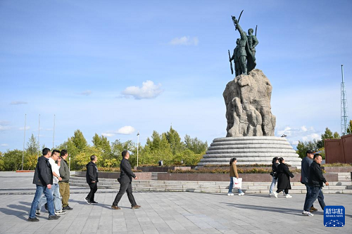 9月18日,人們在內蒙古呼倫貝爾市海拉爾區(qū)世界反法西斯戰(zhàn)爭海拉爾紀念園參觀。(新華社記者 貝赫 攝)