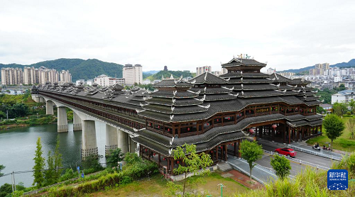 這是9月25日拍攝的三江侗族自治縣的程陽永濟(jì)橋。該橋建成于1924年,整座橋梁搭建時(shí)不用一釘一鉚,主要由木料和石料建成,橋長(zhǎng)近80米,寬近4米,高近12米,是我國(guó)建筑藝術(shù)中的珍品。(新華社記者 張楓 攝)