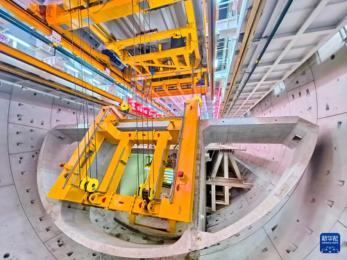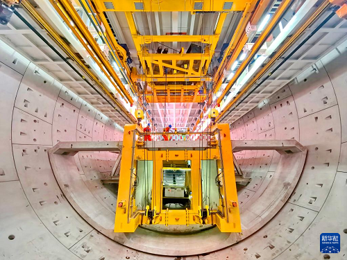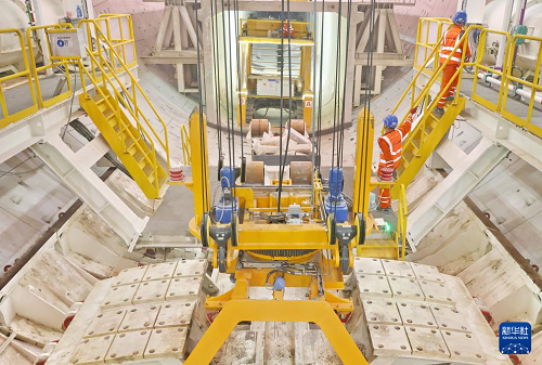 9月28日,施工人員在海太長(zhǎng)江隧道工程施工現(xiàn)場(chǎng)拼裝管片。(新華社發(fā) 許叢軍 攝)