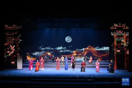 12月10日,南音社團(tuán)代表在“南音薪傳 四海弦歌”專場(chǎng)演出上演唱《遠(yuǎn)望鄉(xiāng)里》。(新華社記者 姜克紅 攝)