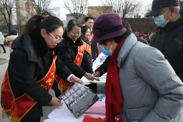 “憲法是國家的根本法,是治國安邦的總章程,具有最高的法律地位……”互動過程中,檢察干警耐心傾聽群眾法治需求,并提供現(xiàn)場咨詢服務,直接回應群眾關切,有效提高群眾辦事依法、遇事找法的意識,讓群眾更深入地了解憲法對公民權利義務的保障,做“法律明白人”。