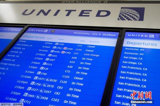 資料圖。2015年7月8日,美國聯(lián)合航空公司電腦系統(tǒng)出現(xiàn)故障,導(dǎo)致其在全美所有機(jī)場的航班停飛約2小時(shí)。