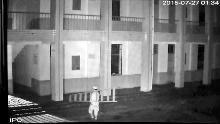 根據(jù)監(jiān)控顯示,2015年7月27日凌晨1時(shí)許,一名身穿迷彩服、頭戴迷彩帽并戴著口罩的男子,扛著梯子從學(xué)校操場(chǎng)來(lái)到金店外的窗戶處。