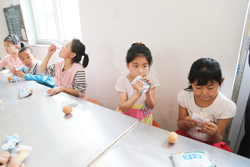 6 月23 日,靜樂縣中莊鄉(xiāng)中莊村小學學生正在吃領(lǐng)到的“營養(yǎng)餐”。截至目前,該縣共有4所初中、32 所小學、40 個教學點的2391 名中小學生每天均可享受到農(nóng)村義務(wù)教育“營養(yǎng)餐”所帶來的溫暖。(閆曉梅 攝)