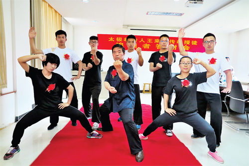王來根對記者說:“中國太極功夫根在民間,作為民間拳師,當我看到新入門的弟子勤學苦練的時候,當我看到中國功夫受到高等學府和高層次人群重視的時候,我感覺自己多年來在傳拳授道方面的付出是值得的,中國功夫在民間永遠不會失傳?!?span style="font-family: 楷體,楷體_gb2312, simkai">圖為王來根師傅與弟子展演武術(魯明強)