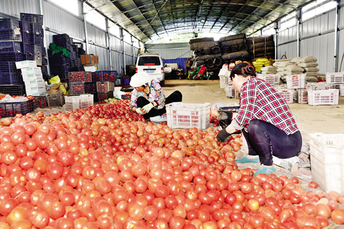 6 月22 日,定襄縣受祿鄉(xiāng)富達農(nóng)業(yè)合作社的農(nóng)戶們將采摘的西紅柿裝筐準備外銷。近年來,定襄縣立足自然資源優(yōu)勢,積極引導農(nóng)民調(diào)整產(chǎn)業(yè)結(jié)構(gòu),大力發(fā)展設施農(nóng)業(yè),促進了農(nóng)業(yè)增效、農(nóng)民增收。(張玉虎 攝)