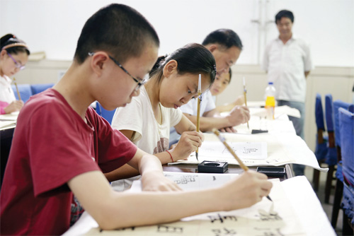 7 月17 日,在靜樂縣青少年文化活動中心,孩子們正在認(rèn)真練習(xí)書法。進入暑期以來,該縣興趣特長班又火熱起來,學(xué)生們利用暑假時間投身于各自的興趣愛好之中,讓自己的假期變得更為充實、更有意義。(閆曉梅 攝)