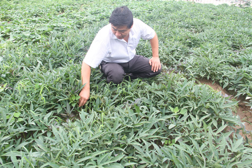 為了充分發(fā)揮紅薯新品種龍薯一號(hào)的優(yōu)良中性,加快新品種的推廣步伐。7月20日,原平市農(nóng)業(yè)學(xué)校種植科劉主任在實(shí)訓(xùn)基地查看長(zhǎng)勢(shì)喜人的新品種紅薯。近年來,該校利用新技術(shù)培育脫毒苗進(jìn)行新作物、新品種的試驗(yàn)示范,為農(nóng)民脫貧增產(chǎn)增收發(fā)揮了積極作用,拓寬了農(nóng)民致富路子。(褚震 攝)