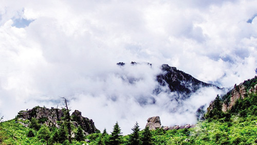 蘆芽山系管涔山的主峰,位于寧武縣境內(nèi),海拔2739 米。這里峰巒重疊,簇?fù)泶笮?00 多座山峰,山峰尖峭,怪石嶙峋,林木茂密;夏季的蘆芽山多陣雨,陣雨過(guò)后日出天晴,必有氣勢(shì)磅礴的云霧景觀出現(xiàn),如夢(mèng)幻仙境,令游人迷醉。(曹建國(guó))