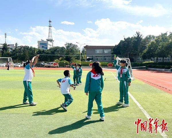9月8日下午,記者來(lái)到固原市原州區(qū)第十一小學(xué)(以下簡(jiǎn)稱“原州十一小”)。課間15分鐘,教學(xué)樓前的空地上,學(xué)生們跳繩、打沙包、跳方格,歡笑聲此起彼伏;30分鐘大課間時(shí)段,在學(xué)校老師陪伴下,56個(gè)班級(jí)2976名學(xué)生參加“迷你軍訓(xùn)”、武術(shù)、球類(lèi)運(yùn)動(dòng)、冰壺訓(xùn)練、自由運(yùn)動(dòng)等,響亮的口號(hào)聲在操場(chǎng)回蕩;體育課上,孩子們以班級(jí)為單位,踢足球、打羽毛球、打籃球,一張張笑臉上洋溢著蓬勃朝氣。