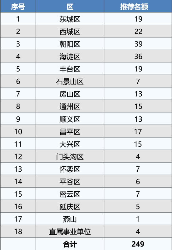 2020年北京市特級教師推薦名額分配表↓↓