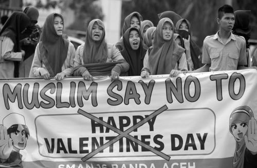然而,在世界上一些觀念相對(duì)保守的國(guó)家或地區(qū),情人節(jié)仍然受到不同程度的抵制。據(jù)英國(guó)《每日郵報(bào)》13日?qǐng)?bào)道,在印尼亞齊省一些地區(qū),慶祝情人節(jié)仍被視為“不法行為”,并被政府當(dāng)局嚴(yán)令禁止。該省首府城市班達(dá)亞齊禁止市民互相贈(zèng)送賀卡或巧克力。該市市長(zhǎng)伊里查說(shuō):“我們的社區(qū)和穆斯林年輕人不應(yīng)慶祝非伊斯蘭教的節(jié)日……政府當(dāng)局有義務(wù)預(yù)防公眾和年輕一代人從事不法行為。”據(jù)稱,當(dāng)?shù)貓?zhí)法人員將在情人節(jié)前后加緊巡邏,嚴(yán)查送花或贈(zèng)送禮物等行為。