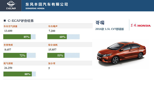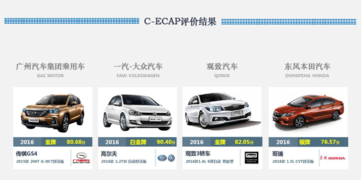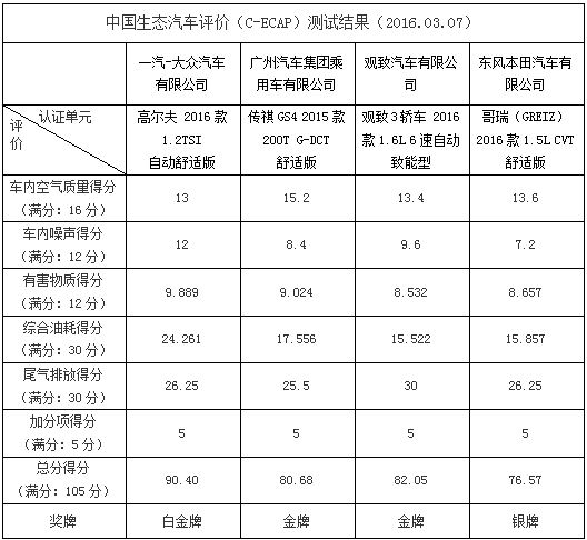 在本批次C-ECAP評價中,一汽-大眾高爾夫車型獲得截止至目前C-ECAP評價車型中的最高獎牌白金牌;廣汽傳祺是在C-ECAP中首次出現(xiàn)的中國品牌,與觀致車型一并獲得金牌;東風本田哥瑞因在車內(nèi)噪音方面的相對得分較低,獲得銀牌。
