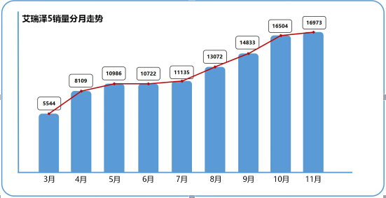 和SUV市場相比,自主品牌在轎車領(lǐng)域的表現(xiàn)一直差強(qiáng)人意,但是,今年奇瑞推出的一款中級(jí)家轎可謂是出盡風(fēng)頭,上市253天銷量突破10萬輛,11月份銷量達(dá)到16973輛,刷新了自主轎車新車型銷量增速記錄。在11月份舉辦的廣州國際車展期間,艾瑞澤5更是一口氣拿了11項(xiàng)大獎(jiǎng),堪稱拿獎(jiǎng)拿到手軟。