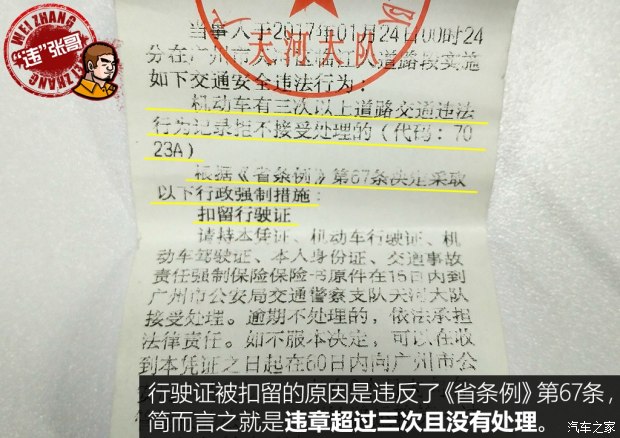 “違”張哥這個(gè)系列的選題原本都是我的同事張欣在更新,而我(廣州分站編輯陳海傭)平時(shí)很少寫用車類文章,但每次只要寫就說(shuō)明我又?jǐn)偵鲜铝?。這次比較尷尬,在春節(jié)放假前夕,因?yàn)檫`章過(guò)多被交警扣留行駛證。表面是把違章處理完就能拿回行駛證,可沒想到整個(gè)過(guò)程竟是如此一波三折,很多細(xì)節(jié)需要注意。據(jù)統(tǒng)計(jì),在今年春節(jié)期間,就有超過(guò)220萬(wàn)多條違章產(chǎn)生,不知道大家有沒有中招。如果有并且違章次數(shù)超過(guò)三次,那就要特別注意了,也希望我這次親身經(jīng)歷的分享能夠給大家一些啟發(fā)。