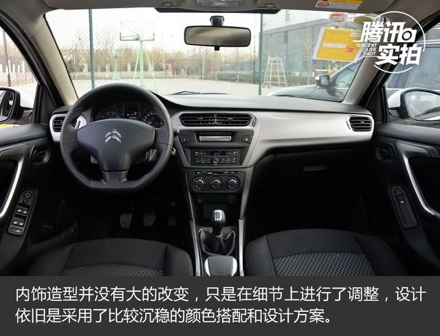 內(nèi)飾造型并沒(méi)有大的改變,只是在細(xì)節(jié)上進(jìn)行了調(diào)整,設(shè)計(jì)依舊是采用了比較沉穩(wěn)的顏色搭配和設(shè)計(jì)方案。中控臺(tái)的材質(zhì)還是硬塑料,做工和顏色搭配還算不錯(cuò),畢竟它是一臺(tái)雪鐵龍的入門級(jí)車型。三幅平底方向盤造型看著令人很有好感,而且手感也不錯(cuò),支持上下兩向調(diào)節(jié),并不能前后拉伸。指針式儀表盤黑底白字清晰易讀,表盤上新增了雪鐵龍法文LOGO和三叉星式圖案,上方顯示屏的顏色也從紅色變?yōu)榱税咨?。多媒體系統(tǒng)功能比較單一,可以提供收音機(jī)和通過(guò)底部USB接駁外部音源。