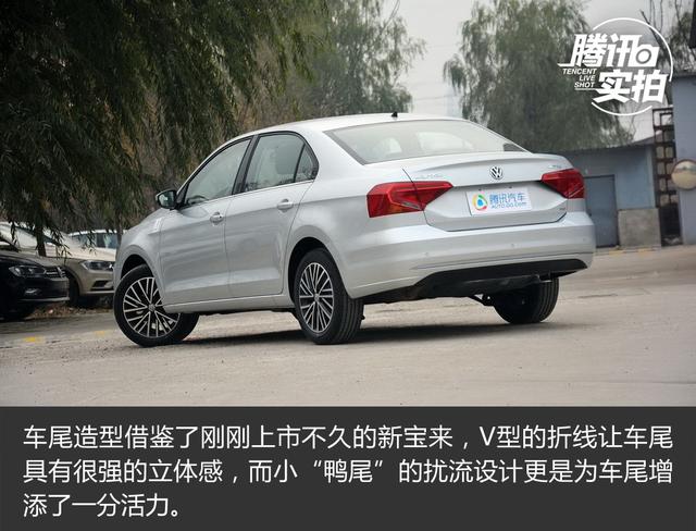 車身側(cè)面沒(méi)有做太大改變,延續(xù)了老款車型簡(jiǎn)單流暢的線條感。后視鏡的造型也更富棱角,側(cè)轉(zhuǎn)向燈從翼子板移至后視鏡,同時(shí)采用了LED光源。門把手采用了與車身同色的設(shè)計(jì),上方增加的鍍鉻裝飾條恰到好處。雙色多幅輪轂是一大亮點(diǎn),造型動(dòng)感時(shí)尚。采用韓泰KINERGY EX輪胎,尺寸為195/55 R16。制動(dòng)系統(tǒng)為前輪通風(fēng)盤式,后輪鼓式。車尾造型借鑒了剛剛上市不久的新寶來(lái),V型的折線讓車尾具有很強(qiáng)的立體感,而小“鴨尾”的擾流設(shè)計(jì)更是為車尾增添了一分活力。立體造型的尾燈與車尾的折線融為一體,內(nèi)部折線的造型,具有很高的辨識(shí)度。車尾的數(shù)字180代表這臺(tái)車裝配的是1.5L自然吸氣發(fā)動(dòng)機(jī)。