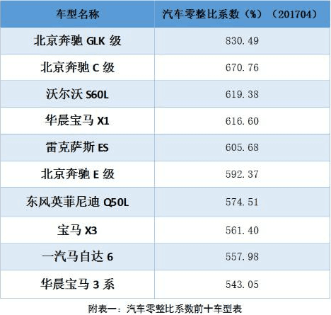 對(duì)于老百姓而言,在得知北京奔馳 GLK級(jí)配件的價(jià)格總和可以買 8輛整車時(shí),可能也僅僅是增添了對(duì)這部分車主的“羨慕”,然而,奔馳寶馬在我國(guó)說到底本就不是平民車。那么,我們就來看看 2017年一季度賣得最好的幾個(gè)品牌車型的零整比系數(shù)如何,下面的數(shù)據(jù)對(duì)你買車真的有幫助呦!