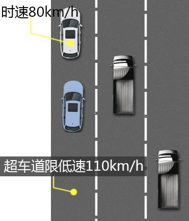 超車道顧名思義,是給想以較高車速行駛的車輛進行超車或行車時使用的。時速在110km/h(部分路段為90-100km/h,以實際指示標示為準)以下的慢車并沒有在超車道行車的權(quán)利。