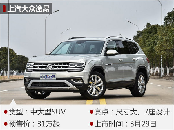 上汽大眾于2016年廣州車展發(fā)布了定位更高的中大型全新SUV-途昂(Teramont),新車將于今年3月29日正式上市。外觀上,新車采用全LED光源前大燈組、“W”型的日間行車燈,并與進氣格柵連為一體。內(nèi)飾配置方面,新車擁有1.18平方米全景天窗、自適應(yīng)巡航、駕駛模式選擇、12.3英寸液晶儀表等。大眾為途昂配備了2.0T(高/低功率)和2.5T V6渦輪增壓發(fā)動機,其中2.5T發(fā)動機的額定功率可達(dá)220kW,峰值扭矩500Nm,并提供四驅(qū)系統(tǒng)。