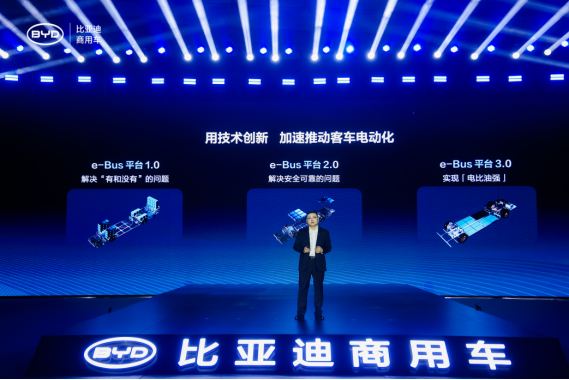 比亞迪自2008年啟動新能源商用車的研發(fā),17年來,累計投入超140億,目前研發(fā)人員已超7000人。作為掌握“三電一芯”新能源核心技術(shù)、且長期專注新能源商用車的企業(yè),e-Bus平臺歷經(jīng)三次迭代,再次突破技術(shù)平臺限制,實現(xiàn)“電比油強(qiáng)”,進(jìn)一步加速道路客運電動化轉(zhuǎn)型。