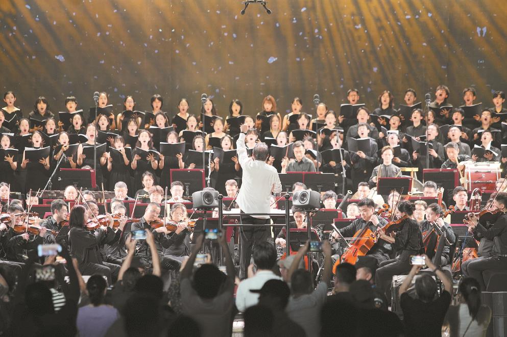 13日晚,上海城市草坪音樂廣場上空回蕩著激昂的《義勇軍進行曲》。在音樂總監(jiān)余隆執(zhí)棒下,上海交響樂團攜手回聲節(jié)日合唱團,以一場紀念中國人民抗日戰(zhàn)爭暨世界反法西斯戰(zhàn)爭勝利80周年的特別音樂會,為2025上海夏季音樂節(jié)(以下簡稱M ISA)畫上句點。這也標志2025上海城市草坪音樂會“夏之魅”系列活動暨上海夏季音樂節(jié)黃浦系列圓滿收官。