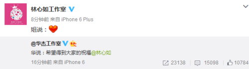 中新網(wǎng)5月20日電今日,霍建華工作室官方微博發(fā)布一條消息,稱“華說:希望得到大家的祝福?!辈亓肆中娜?。隨后,林心如工作室官方微博轉(zhuǎn)發(fā)微博,發(fā)表紅心默認(rèn)。
