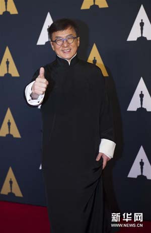 11月12日,成龍出席在洛杉磯好萊塢舉行的第8屆美國電影藝術(shù)與科學(xué)學(xué)院(簡稱影藝學(xué)院)理事會(huì)獎(jiǎng)?lì)C獎(jiǎng)典禮。影藝學(xué)院理事會(huì)12日授予中國影星成龍和其他三位英美電影人奧斯卡終身成就獎(jiǎng),以表彰他們?yōu)殡娪八囆g(shù)作出的杰出貢獻(xiàn)。成龍也是首位獲此殊榮的華人。新華社記者楊磊攝