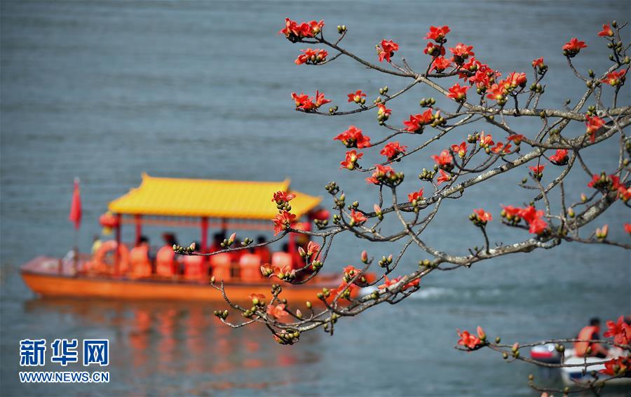 2月20日,游客在昌江霸王嶺觀賞木棉花。早春時(shí)節(jié),海南省昌江黎族自治縣的木棉花競相綻放,吸引大批游客前來踏春賞花。 新華社記者 郭程 攝