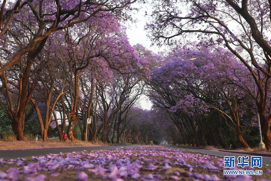 在津巴布韋首都哈拉雷,隨處盛開的藍(lán)花楹成為靚麗的風(fēng)景(10月2日攝)。 近日,位于非洲南部的津巴布韋進(jìn)入春季,全國各地的藍(lán)花楹紛紛盛開。津巴布韋風(fēng)光秀麗,擁有維多利亞瀑布、大津巴布韋遺址等5處世界自然或文化遺產(chǎn)。首都哈拉雷有多處神奇的平衡石景觀,同時(shí)也因出色的園藝被稱為非洲“花城”。新華社發(fā)(陳雅琴攝)