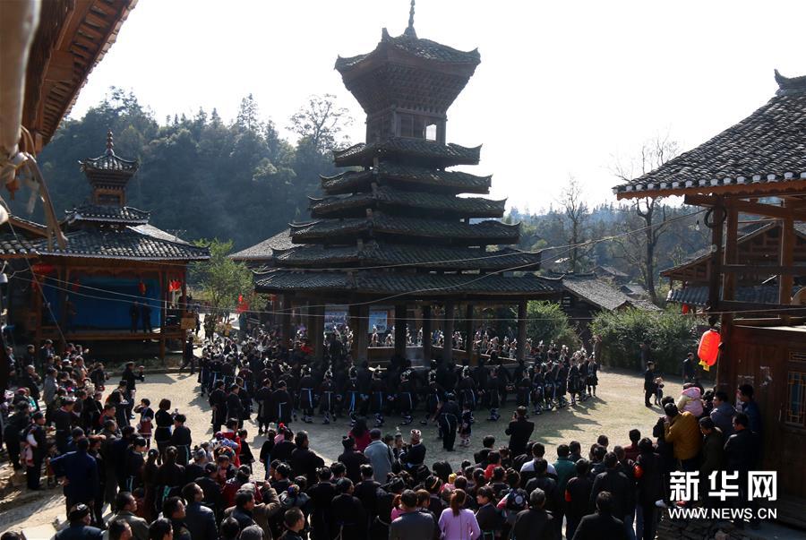 2月17日,貴州省黔東南苗族侗族自治州黎平縣巖洞鎮(zhèn)述洞村開展一年一度的“鼓樓之宗”活動(dòng)。侗族老人在當(dāng)?shù)刈罟爬系墓臉恰冀ㄓ诿鞔莫?dú)柱鼓樓講述侗族遷徙歷程,告誡大家要敬老尊賢、和睦相處、團(tuán)結(jié)友善,侗族青年男女身著節(jié)日盛裝圍著鼓樓一邊踩歌堂,一邊唱遷徙古歌,之后在鼓樓旁進(jìn)行“侗族大歌”對唱,感懷族群遷徙的歷史,傳承傳統(tǒng)文化。新華社發(fā)(楊代富 攝)