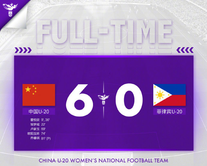 本場(chǎng)中國隊(duì)完全掌控了局面?;魫傂涝谏习雸?chǎng)打進(jìn)兩球,鄒夢(mèng)瑤也打進(jìn)一球。下半場(chǎng)比賽,盧家玉、歐陽玉環(huán)和喬睿琪各入一球,幫助中國隊(duì)輕松取勝。