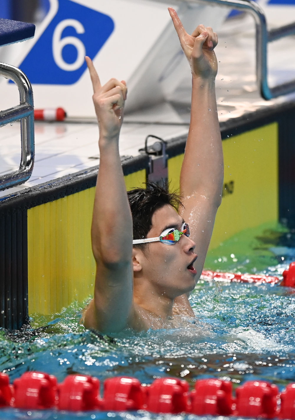繼首個(gè)比賽日在男子100米自由泳決賽中超越亞洲紀(jì)錄后,潘展樂當(dāng)天又以1分44秒65奪得男子200米自由泳金牌,可列今年世界第一好成績(jī),與孫楊保持的亞洲紀(jì)錄1分44秒39相差0秒26。奧運(yùn)會(huì)男子200米混合泳冠軍汪順和浙江隊(duì)另一名選手洪金權(quán)分列第二、三位。