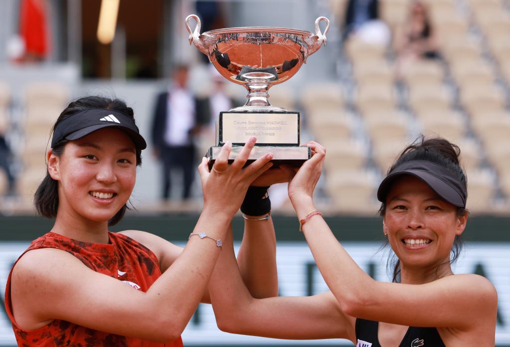 這僅是王欣瑜和謝淑薇搭檔以來參加的第二站賽事。倆人是在一個月前的意大利公開賽時遇到并臨時決定配對雙打。法網(wǎng)前一周的斯特拉斯堡公開賽是她倆搭檔的首秀,當(dāng)時止步第二輪。來到羅蘭·加洛斯,這對“海峽組合”一路過關(guān)斬將,連續(xù)淘汰5對種子選手,最終問鼎冠軍。