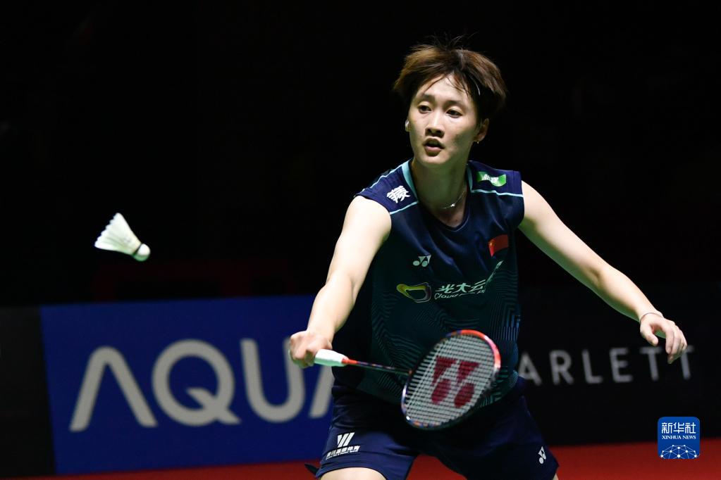 6月17日,陳雨菲在雅加達(dá)舉行的2023年印度尼西亞羽毛球公開賽女單比賽中回球。新華社記者 徐欽 攝