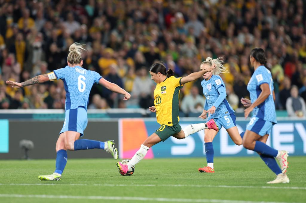 澳大利亞隊的興奮持續(xù)了不到10分鐘。第71分鐘,布萊特從中場一腳長傳直塞禁區(qū),亨普起腳射門,2:1,英格蘭隊再次領(lǐng)先。第86分鐘,英格蘭隊抓住澳大利亞隊后衛(wèi)失誤打出反擊,亨普中場帶球推進,助攻拉索,后者打遠(yuǎn)角破門,幫助英格蘭隊3:1鎖定勝局。