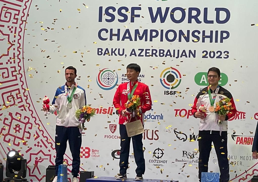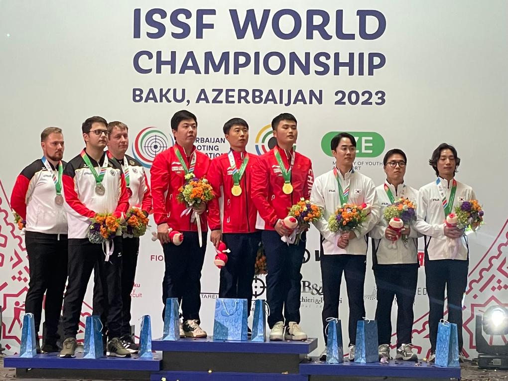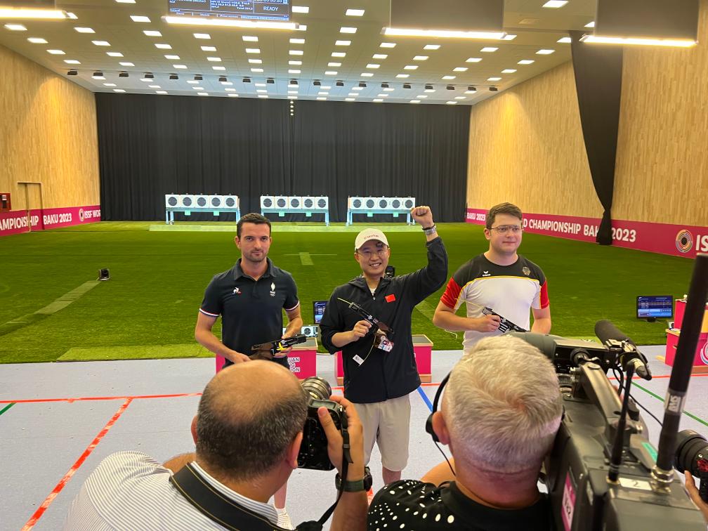 該項目比賽中,中國隊老將新人都有出色發(fā)揮。首次參加國際比賽的王鑫杰資格賽打出588環(huán)排名第一,與位居次席的李越宏攜手晉級決賽。他們兩人與劉楊攀組成的中國隊團體成績1756環(huán),追平了世界紀錄,足足領先亞軍德國隊16環(huán)。