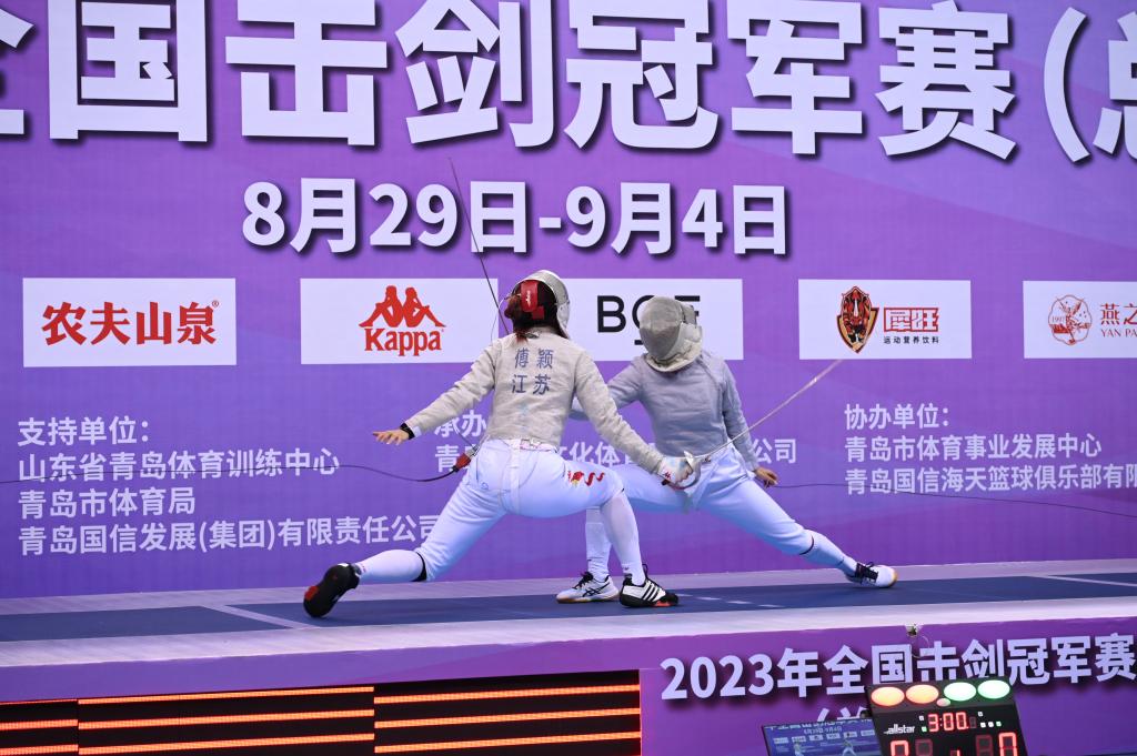 江蘇隊(duì)傅穎(左)在比賽中。(圖片來(lái)自中國(guó)擊劍協(xié)會(huì))