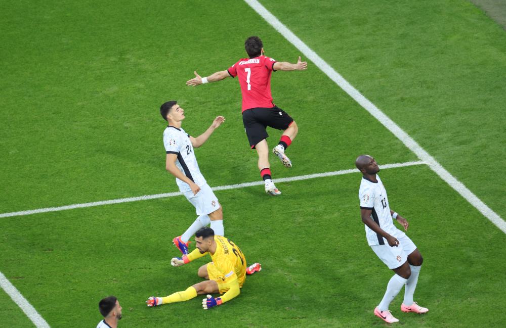 6月26日,格魯吉亞隊(duì)球員克瓦拉茨赫利亞(上)慶祝進(jìn)球。當(dāng)日,在德國蓋爾森基興進(jìn)行的2024歐洲足球錦標(biāo)賽F組第三輪比賽中,葡萄牙隊(duì)0比2不敵格魯吉亞隊(duì)。新華社記者 白雪飛 攝 小組賽階段產(chǎn)生了多項(xiàng)歐錦賽歷史紀(jì)錄。葡萄牙隊(duì)41歲的后衛(wèi)佩佩成為歐錦賽歷史上出場最“高齡”的球員,C羅成為參加六屆歐錦賽的第一人,38歲的莫德里奇在攻破意大利隊(duì)球門后成為歐錦賽史上最年長的進(jìn)球者。同時(shí),帶著學(xué)校作業(yè)來參賽的西班牙16歲前鋒亞馬爾成為歐錦賽史上最年輕的出場球員,匈牙利隊(duì)23歲的索博斯洛伊成為歐錦賽史上最年輕的隊(duì)長。 (責(zé)任編輯:蔡文斌) |